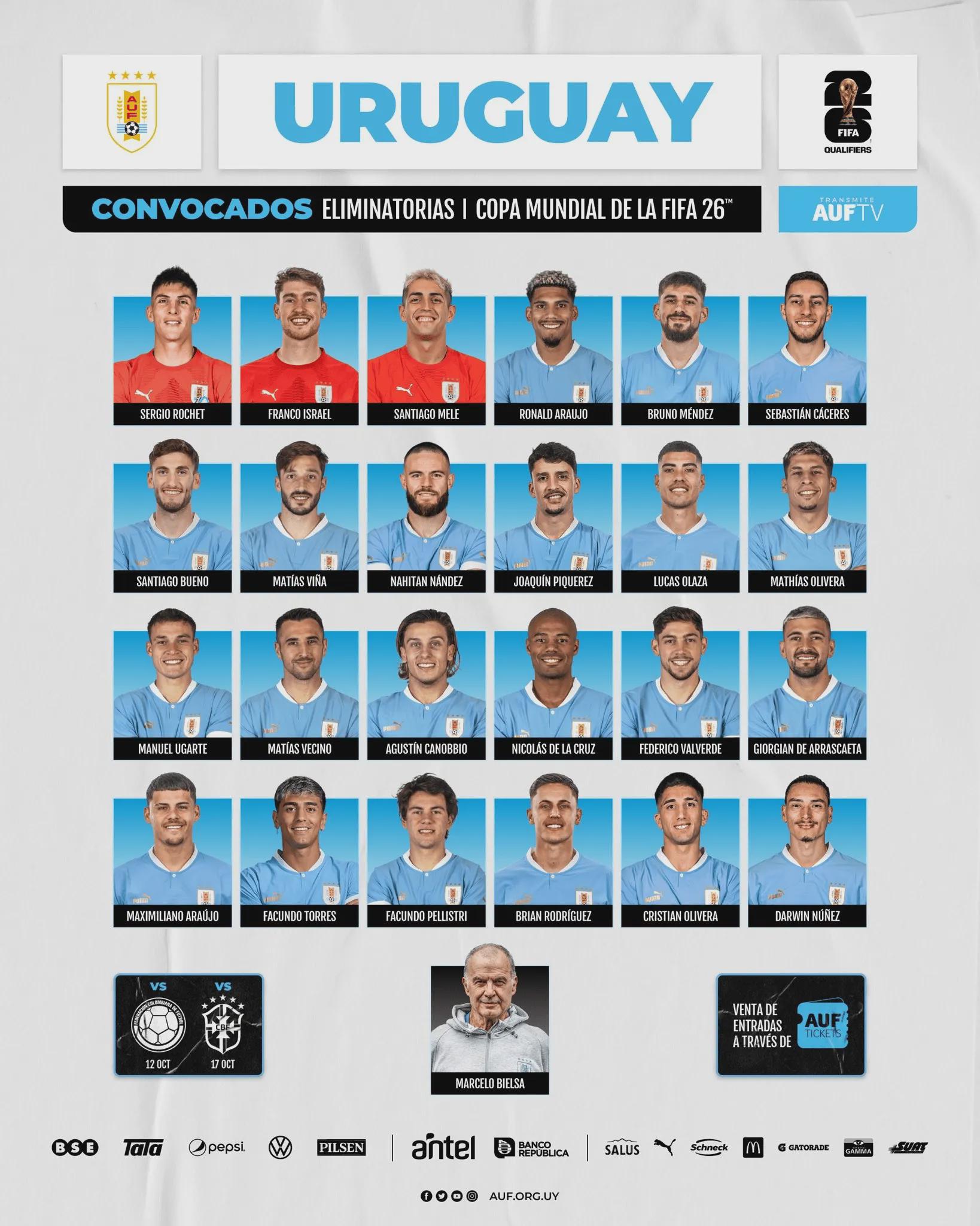 目前,烏拉圭國家隊的最新名單匯聚了眾多優(yōu)秀的足球運動(dòng)員,這支隊伍實(shí)力強大,擁有眾多技術(shù)嫻熟、經(jīng)驗豐富的球員,他們的出色表現為烏拉圭足球增添了光彩,也為世界足球注入了新的活力。